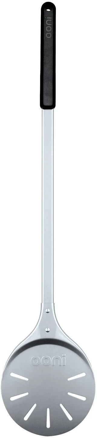 Cook your pizzas faster with the Ooni Pizza Turning Peel, keeping pizzas in contact with the stone baking board as you spin them like a pro in your flaming-hot Ooni pizza oven. The seven-inch, durable anodised aluminium surface has a non-stick effect for sliding right under pizzas, while the perforations let excess flour fall away for a perfectly cooked pizza base.