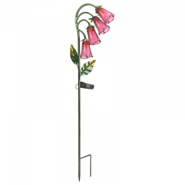 Beautiful hand painted glass-petalled flower design stake light, unique and vibrant by day, brings any flower bed, border or pot to life at night